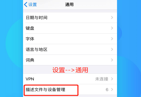 第一步 进入设置-->通用-->描述文件