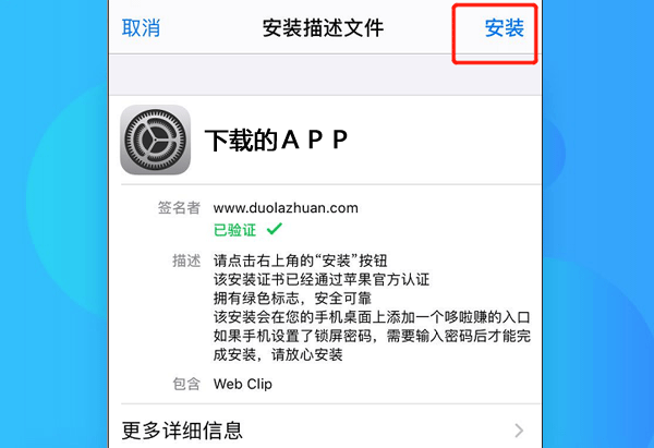 第三步 点击右上角安装